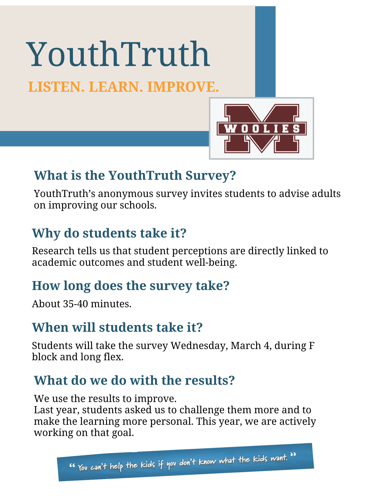 Dear Woolie families,We are sending along a copy of the email that we sent to the 8th grade students today. It is to help them understand our course selection process and how they can be prepared. ...